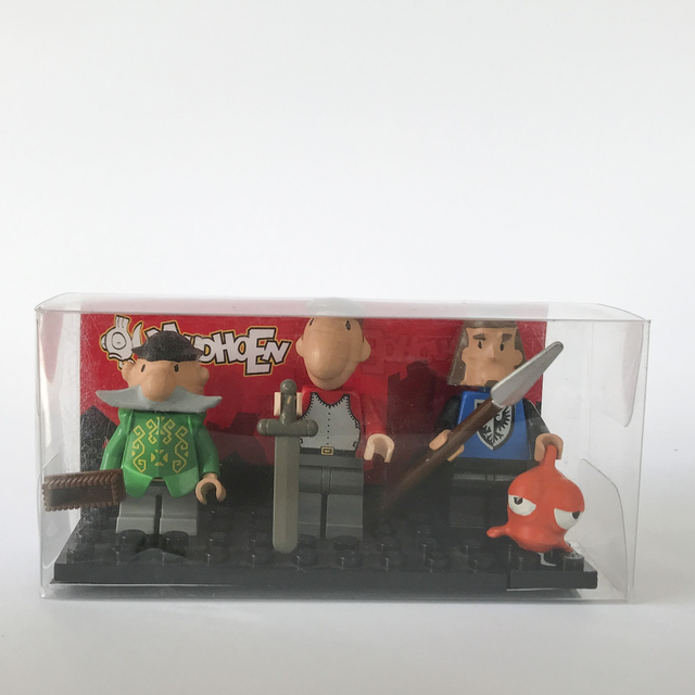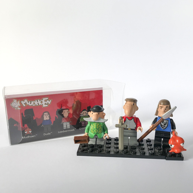 Mudhoen Lego set met Dude, Grootbuuk, Leedvermaak en Mudhoen als ridders. Prijs is incl. verzendkosten