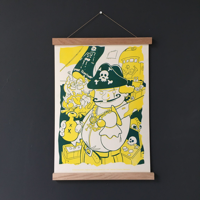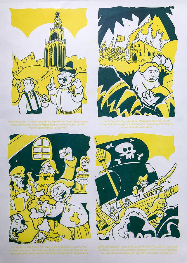 Posterstrip over de beruchte piraat Rock de Braziliaan. De poster is gedrukt door Chemistry Printing in Leeuwarden in een gelimiteerde oplage. Prijs is incl. verzendkosten.